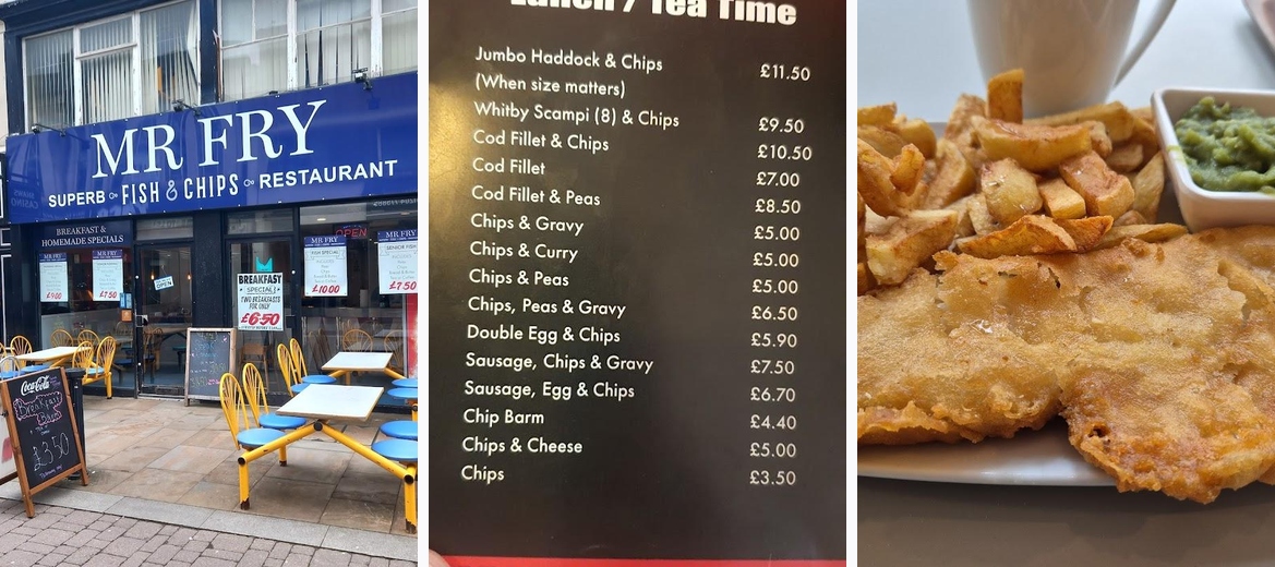 Meals at Mr Fry are quite affordable, ranging from £1 to £10, offering great value for tasty fish and chips.
